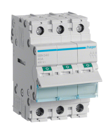 This is 3P Pole Isolator Switch - 40A Maximum Current IP20 manufactured by Hager. The manufacturer part number is SBN340. It also carries 40a maximum current. It is IP rated with ip20. The product sb, is a highly preferred choice for users. Moreover, the product has a nominal 230 → 400v ac voltage rating. Its accurate length is 52.5mm. In addition, it has a 3p throw configuration . Furthermore, the product is 83mm wide. The product comes in 72mm depth. Whereas, the minimum operating temperature of the product is -20°c. Its electrical phase configuration includes 1. It has a maximum operating temperature of +50°c. It has equipped with 3p poles. The terminal is a screw type.