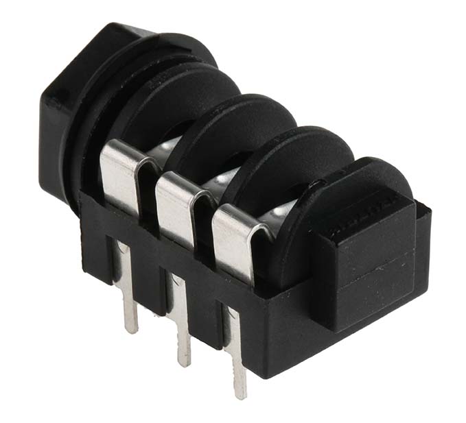 This is 1/4 in Through Hole Stereo Jack Socket 3 50 V 3A manufactured by RS Pro. The manufacturer part number is 449-348. The product has a current rating of 3a. The product is available in through hole configuration. Moreover, the product has a nominal 50 v voltage rating. In addition, female is the available "Gender" of the product. It has a decent black colour. It allows solder termination method. The product also features robust nylon housing material. The high-quality silver over nickel is used as contact plating material. It has about 3 number of poles/ways . The product is made from sturdy brass materials. It comes in stereo configuration. It has straight body orientation. The product is available in 6.35 mm size.