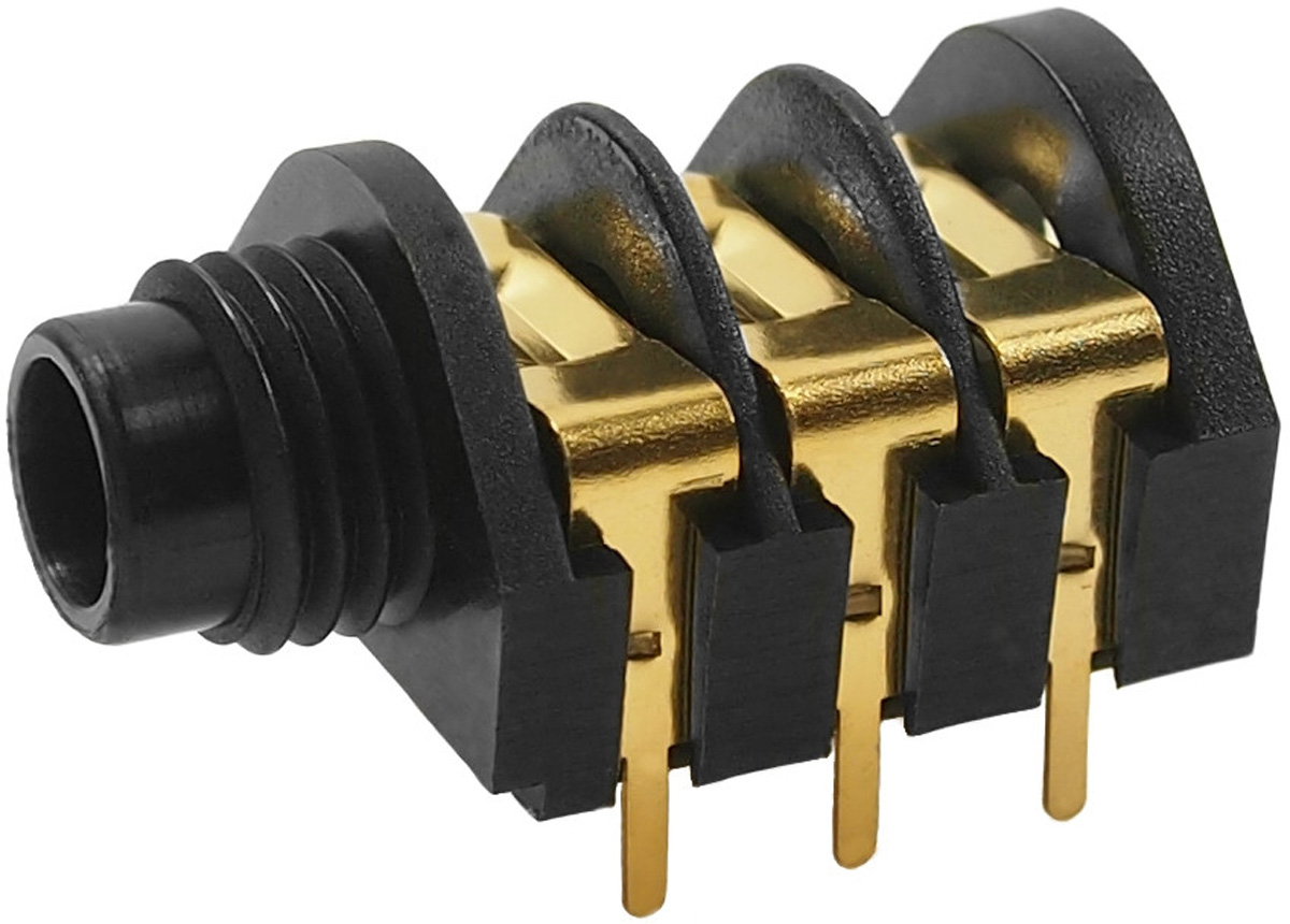This is S2 Series 6.35 mm Panel Mount Right Angle Jack Socket 3 5A manufactured by RS Pro. The manufacturer part number is 143-8934. The product has a current rating of 5a. The product is available in panel mount configuration. In addition, female is the available "Gender" of the product. It has a decent black colour. It allows solder termination method. The product also features robust nylon housing material. The high-quality gold is used as contact plating material. It has about 3 number of poles/ways . The product is made from sturdy silver alloy materials. It comes in stereo configuration. It has right angle body orientation. The product is available in 6.35 mm size.