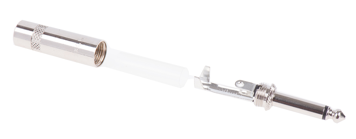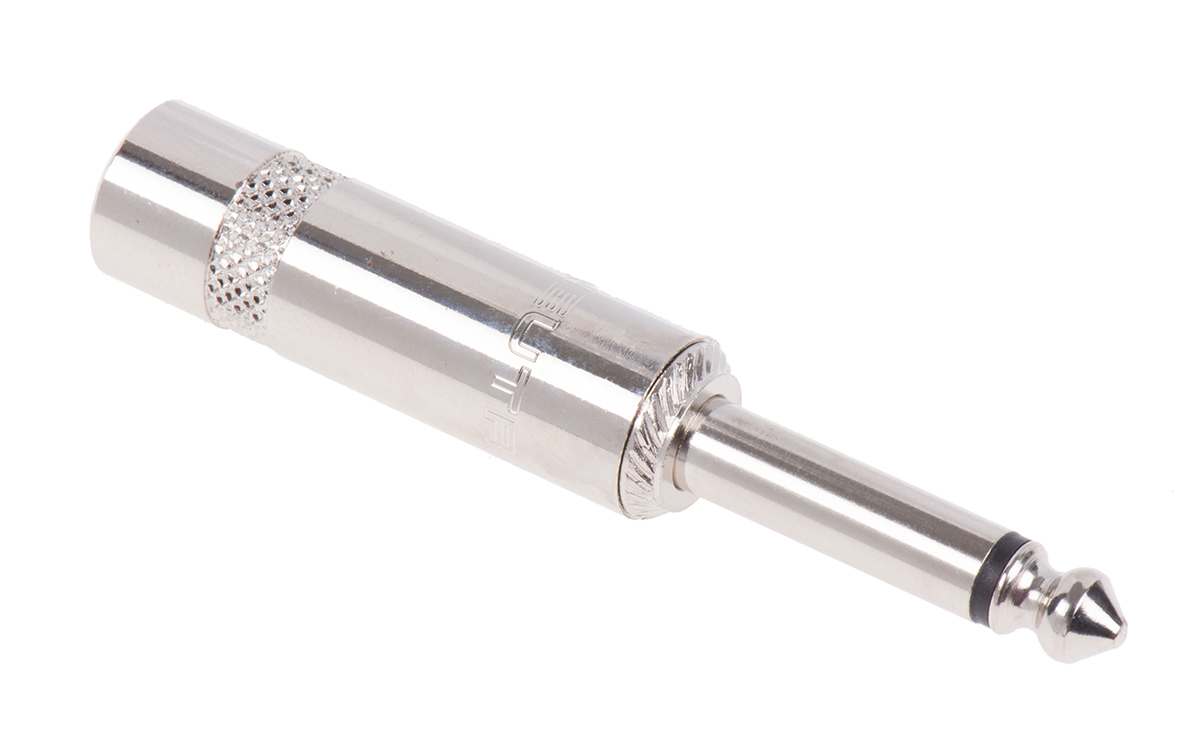 This is 1/4 in Cable Mount Mono Jack 2 manufactured by RS Pro. The manufacturer part number is 395-1052. The product is available in cable mount configuration. In addition, male is the available "Gender" of the product. It has a decent silver colour. It allows crimp termination method. The product also features robust thermoplastic housing material. The high-quality gold over nickel is used as contact plating material. It has about 2 number of poles/ways . The product is made from sturdy brass materials. It comes in mono configuration. It has straight body orientation. The product is available in 6.35 mm size.