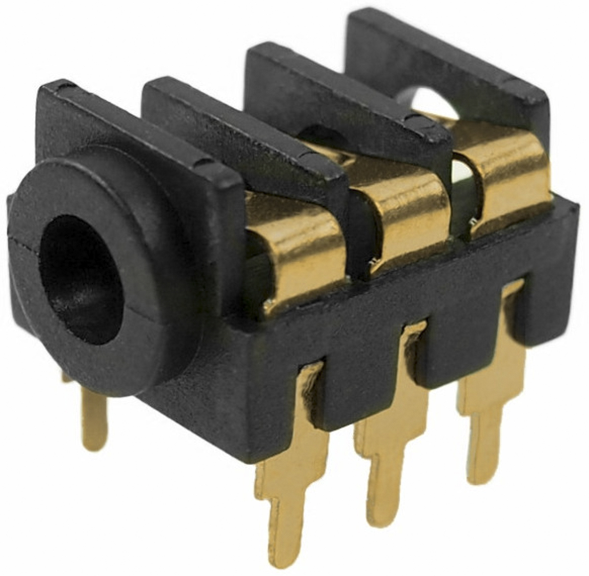 This is FC Series PCB Mount Right Angle Mini Jack Socket 3 manufactured by RS Pro. The manufacturer part number is 175-0157. The high-quality gold is used as contact plating material. The product is available in pcb mount configuration. In addition, female is the available "Gender" of the product. It has a decent black colour. It allows solder termination method. It has about 3 number of poles/ways . It comes in stereo configuration. It has right angle body orientation.