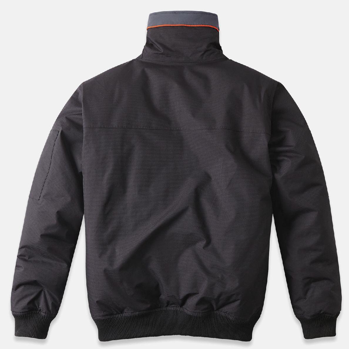 The Parade Ortego is a medium size work jacket, made with 100% nylon reinforcement. These jacket is 3000 schmerber water proofing and ribbed cuffs. Available in dark and navy colour. It is equipped with high collar, sleeve pocket and inside pocket. The jacket also has zip breast and cargo pockets, front flap pockets, zip and velcro inside pockets. Warm jacket, lined with orange parade-polyester, 160g wadding Zip breast and cargo pockets, front flap pockets, zip and velcro inside pockets Scuffs-resistant reinforcement at the back of the collar Ribbed at the cuffs and bottom Fleece-lined parade coll