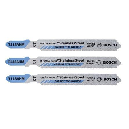 This is T-Shank bimetal Jigsaw Blade Set 50mm Cutting Length 1.1mm Tooth Pitch manufactured by Bosch. The manufacturer part number is 2608630663. It has 3 items per pack . It has about 50mm cutting length . It has a t-shank type shank . Applications Information involves steel; non-ferrous metal; stainless steel. Moreover, its tooth pitch is about 1.1mm . It has a model t118ahm. It is bimetal yes . In addition, its blade is made up of tungsten carbide material .