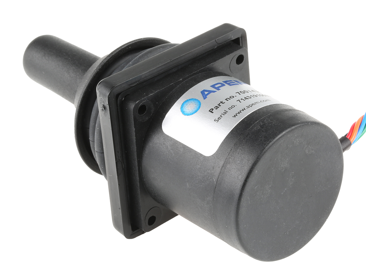 This is IP65 Joystick Switch 2 axes 10 mA@ 15 V Flying Lead -25 → +55°C manufactured by APEM. The manufacturer part number is 700-143. It is created using potentiometric switch technology . Additionally, it has about ±18 ° joystick travel capacity . Its handle height is approximately 63mm . Basically, this handle is a type of knob, allowing extreme comfort. The rated contact current is 10 ma@ 15 v. It is IP rated with ip65. The product has -25 → +55°c of operating temperature range. Typical depth of 38.25mm behind panel. Whereas, the minimum operating temperature of the product is -25°c. The product also provide mechanical stability with 10000000operations. It is designed having 2 axes. It has a maximum operating temperature of +55°c. The terminal is a flying lead type.