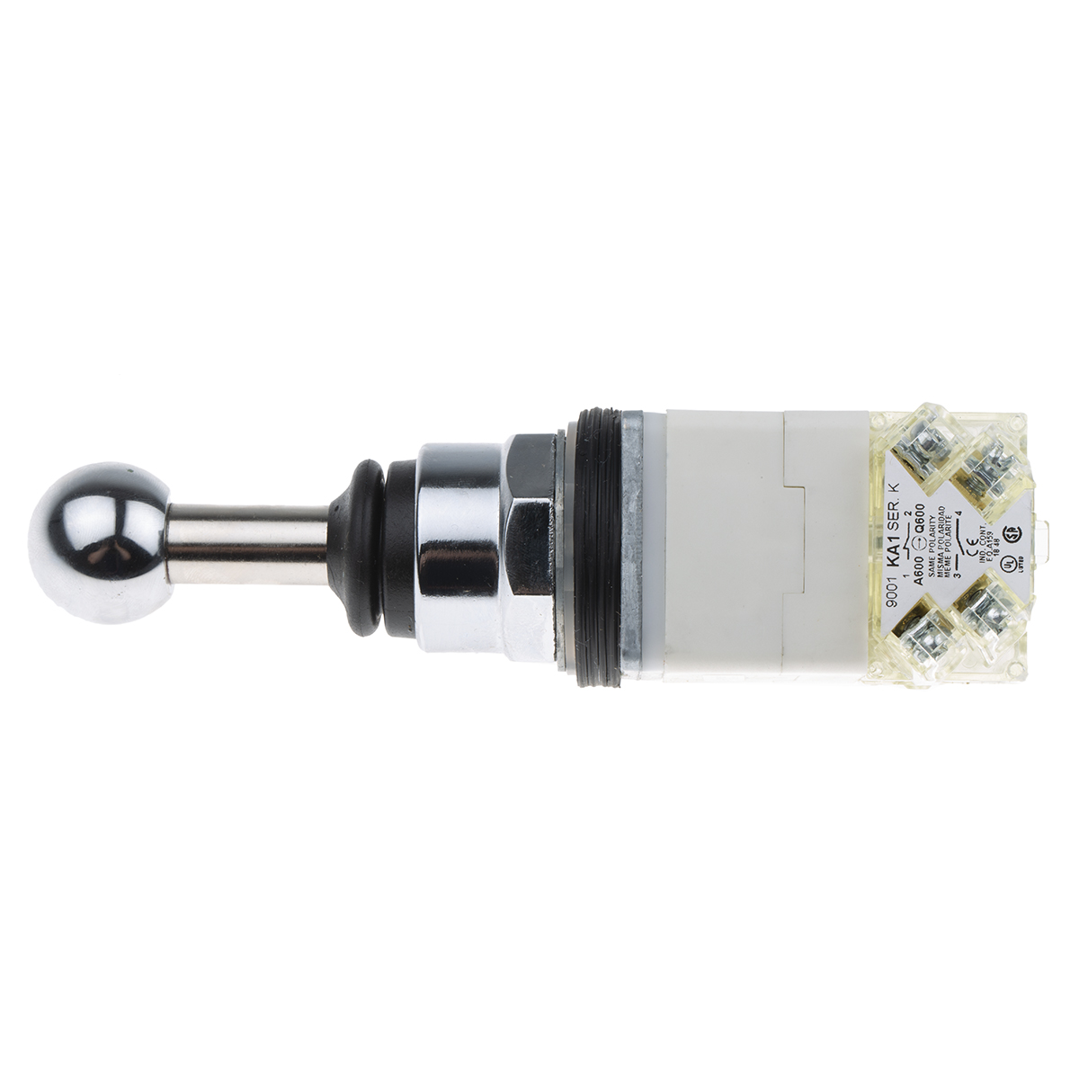 This is IP66 Joystick Switch 4 axes 3 A @ 240 V ac 550 mA @ 125 V dc Screw Clamp 2NO/2NC -25 → +75°C manufactured by Schneider Electric. The manufacturer part number is 9001K35H2. Whereas, the minimum operating temperature of the product is -25°c. The product has -25 → +75°c of operating temperature range. Basically, this handle is a type of lever, allowing extreme comfort. The rated contact current is 3 a @ 240 v ac, 550 ma @ 125 v dc. The product harmony 9001k, is a highly preferred choice for users. It is IP rated with ip66. It is designed having 4 axes. Typical depth of 71mm behind panel. The product also provide mechanical stability with 500000cycles. It is created using slow break switch technology . It has a maximum operating temperature of +75°c. The terminal is a screw clamp type. The contact is equipped with 2no/2nc configuration. The product is made from sturdy silver alloy materials. It comes in maintained configuration. It also has a 30mm (round) dimensional features. The product is rohs3 compliant. In addition, it is reach affected. Its typical moisture sensitivity level is not applicable. In addition, box is the available packaging type of the product. The product carries joystick actuator. Is this product illuminated? non-illuminated. It has a long 5 weeks standard lead time. The product requires contact block(s). Compatible with series schneider, harmony 9001k. The schneider electric's product offers user-desired applications.