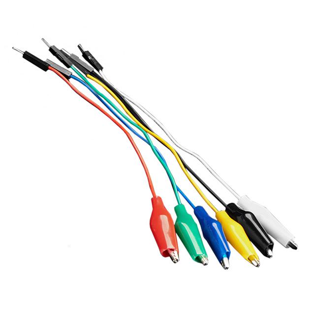 This is manufactured by Adafruit Industries LLC. The manufacturer part number is 3448. The product is rohs3 compliant. It first connector includes alligator clip, insulated. It is designed from highly reliable vinyl insulating material. The second connector is tip plug. It is assigned with possible HTSUS value of 8544.42.9090. The product is available in alligator to pin tip configuration. It is shipped in bulk package . Moreover, the product has a wire gauge of 26 awg. Its typical moisture sensitivity level is not applicable. It has a long 12 weeks standard lead time. Furthermore, the cable has a 6.0" (152.40mm) of length. Contents Include: 6 leads, multiple colors. The product is designated with the ear99 code number.