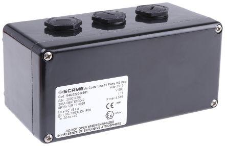 This is GRP IP66 Junction Box 14 Terminal 160 x 75 x 75mm Black manufactured by Scame. The manufacturer part number is 644.0220-RS01. It has about 160 x 75 x 75mm dimensions L x W x H . It comprises 6 ways. It is IP rated with ip66. It has a decent black colour. The product is made from highly stable and reliable grp. In addition, the height is 75mm. The product is certified with atex hazardous area certification. Furthermore, the product is 75mm wide. Its accurate length is 160mm. It includes 14 dedicated terminals .