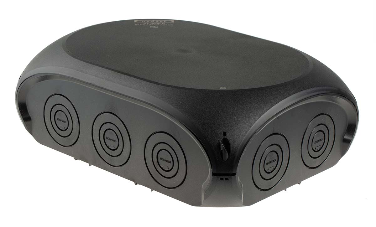 This is Polycarbonate IP66/67 Junction Box Knock Out 355 x 255 x 122mm Black manufactured by HENSEL. The manufacturer part number is KF5000B. It has about 355 x 255 x 122mm dimensions L x W x H . It comprises 12 ways. The product enycase dk, is a highly preferred choice for users. It has a decent black colour. The product is made from highly stable and reliable polycarbonate. Moreover, it has a typical knock out cable entry . In addition, the height is 122mm. Furthermore, the product is 255mm wide. Its accurate length is 355mm.