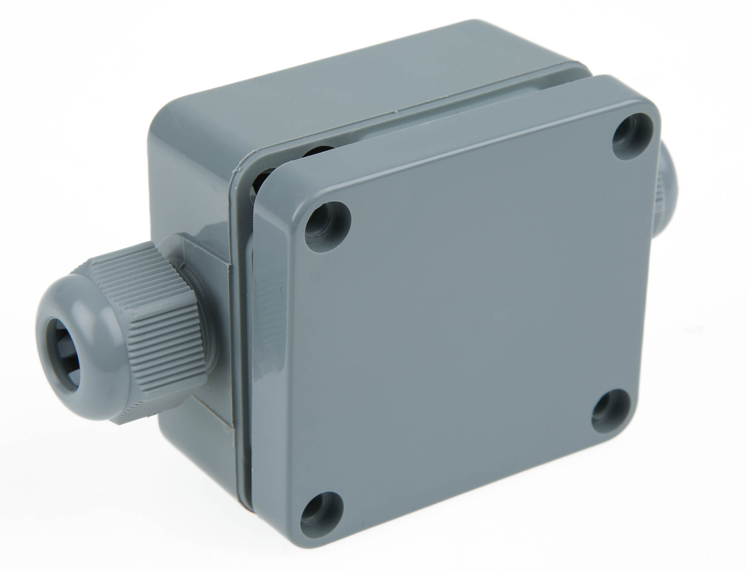Forged from polyamide, this junction box boasts formidable resistance against environmental elements and mechanical stress. The grey hue exudes a sleek yet understated aesthetic, blending seamlessly into diverse industrial settings.