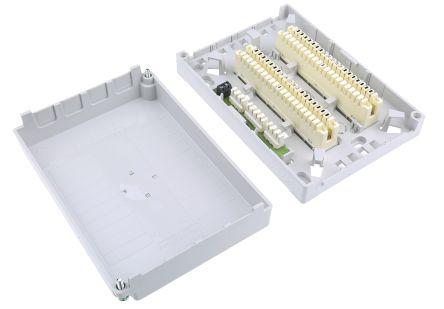 This is Plastic Junction Box 20 Terminal 120 x 43 x 170mm Grey manufactured by Krone. The manufacturer part number is 6429 1 076-00. It has about 120 x 43 x 170mm dimensions L x W x H . It comprises 20 ways. It has a decent grey colour. The product is made from highly stable and reliable plastic. In addition, the height is 170mm. Furthermore, the product is 43mm wide. Its accurate length is 120mm. It includes 20 dedicated terminals .