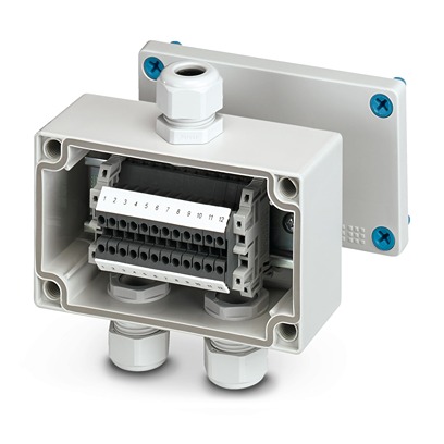 This is E AB A Series Grey ABS Junction Box 12 Terminals 130 x 80 x 60mm manufactured by Phoenix Contact. The manufacturer part number is 3002003. It has about 130 x 80 x 60mm dimensions L x W x H . The product e ab a, is a highly preferred choice for users. It has a decent grey colour. The product is made from highly stable and reliable abs. In addition, the height is 60mm. Furthermore, the product is 80mm wide. Its accurate length is 130mm. It includes 12 dedicated terminals .