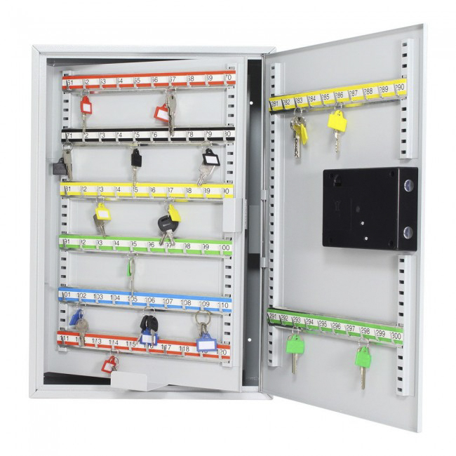 This is S300EL single walled key cabinet. manufactured by Rottner Comsafe. The manufacturer part number is T06025. The module has the capacity of 300. The product is available in wall mounted configuration. It has a decent grey colour. The product is made from highly stable and reliable steel. It has a/an key cabinet type cabinet . In addition, the height is 550 mm. Furthermore, the product is 380mm wide. The product comes in 205 mm depth.