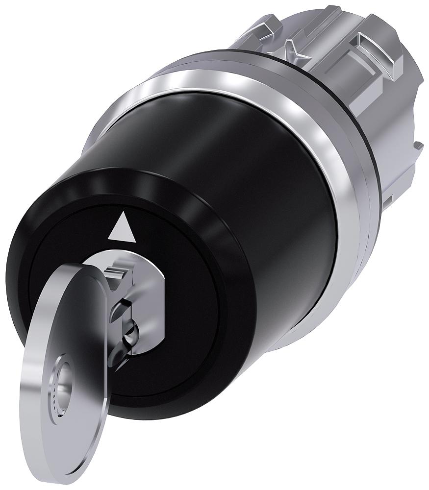 This is SIRIUS ACT 3 Position Key Switch Head Latching manufactured by Siemens. The manufacturer part number is 3SU1050-5PN01-0AA0. Is it a better world product? yes. The total number of keys are 2. It is IP rated with ip66, ip67, ip69(ip69k). The product sirius act, is a highly preferred choice for users. It has a throw angle 45°. It has a latching actuation switch . The key is a s1 key with exquisite design. With o key withdrawal position it works more perfectly . The product carries possible position value of 3. Whereas, the minimum operating temperature of the product is -25°c. Whereas its cut-out diameter is 22mm. It has a maximum operating temperature of +70°c. The product also provide mechanical stability with 300000.