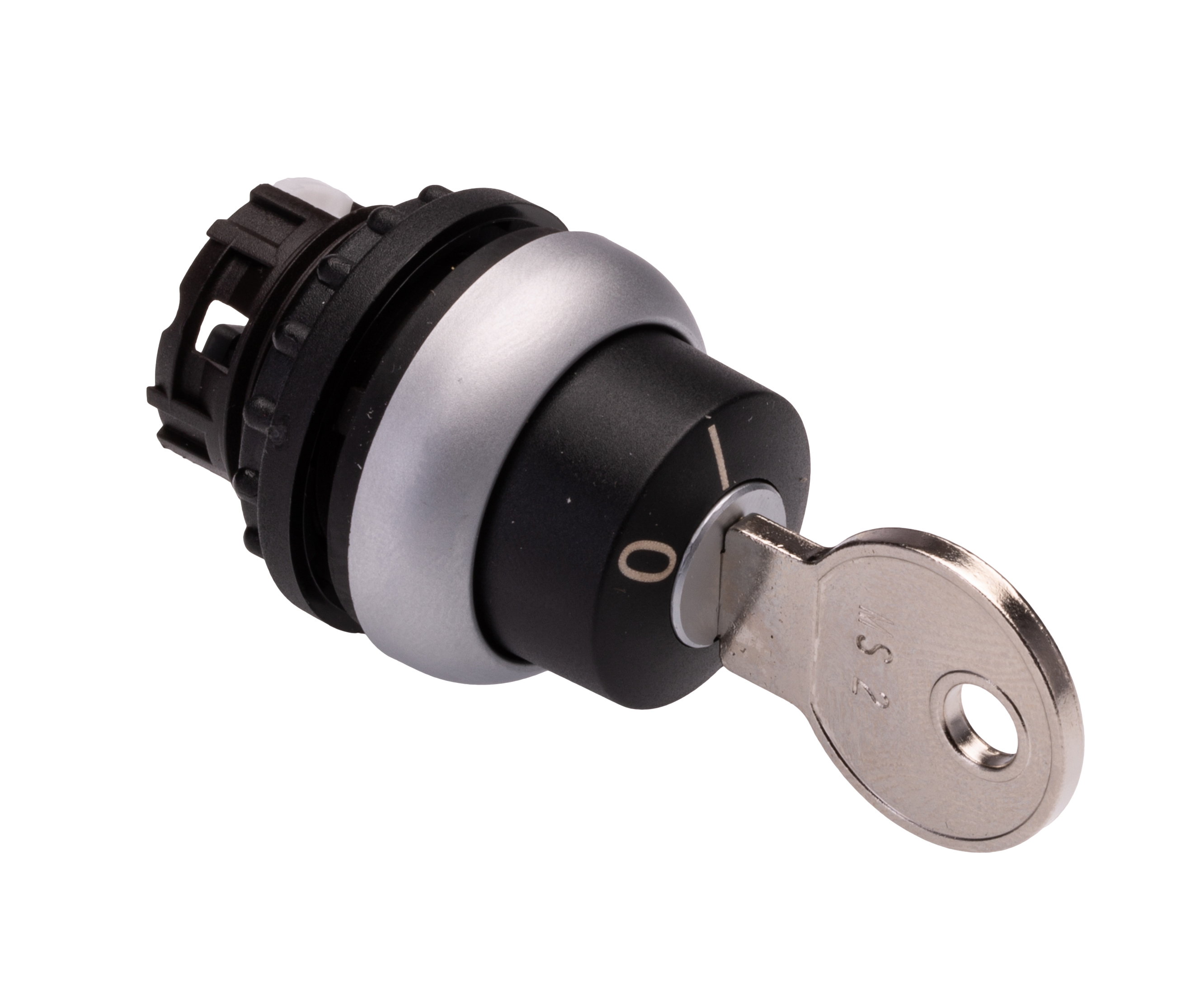 This is M22 Key Switch Head - 2 Position Latching 22mm cutout manufactured by Eaton. The manufacturer part number is 111778 M22-WRS-MS2. The total number of keys are 1. Illumination Option no. It is IP rated with ip66. The product rmq titan, is a highly preferred choice for users. It has a throw angle 40°. Whereas, the minimum operating temperature of the product is -25°c. It has a latching actuation switch . The key is a ms2 key with exquisite design. With o + i key withdrawal position it works more perfectly . The casing is finished with an adorable black colour. The product carries possible position value of 2. Whereas its cut-out diameter is 22mm. It has a maximum operating temperature of +70°c. The product also provide mechanical stability with 00 operations, 000 operations, 1 operations.