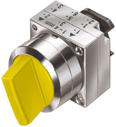 This is 3SB3 3 Position Selector Switch Head Standard Handle Yellow Momentary manufactured by Siemens. The manufacturer part number is 3SB3501-2EA31. Illumination Option yes. The product 3sb3, is a highly preferred choice for users. It has a throw angle 50°. It has a momentary actuation switch . The product carries standard handle yellow actuator. Whereas its cut-out diameter is 22mm. The product carries possible position value of 3.