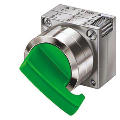 This is 3SB3 2 Position Selector Switch Head Long Handle Green Latching manufactured by Siemens. The manufacturer part number is 3SB3501-3PA41. Illumination Option yes. The product 3sb3, is a highly preferred choice for users. It has a throw angle 50°. It has a latching actuation switch . The product carries long handle green actuator. Whereas its cut-out diameter is 22mm. The product carries possible position value of 2.