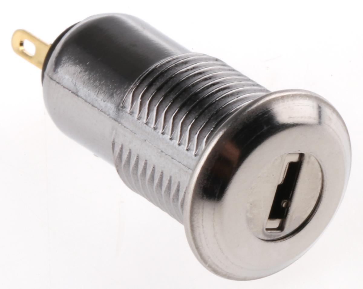 This is Key Switch SPST 500 mA @ 24 V 2-Way manufactured by Lorlin. The manufacturer part number is SKL-12-AD2. The product carries possible position value of 2. Its key index is of 90° angle . The product complies with all safety standards, such as rohs. The rated contact current is 500 ma @ 24 v. The key is a flat, random key with exquisite design. The casing is constructed from highly stable zinc alloy material. It has a round shape bezel . The product also provide mechanical stability with 10000. The contact is equipped with spst configuration. The terminal is a solder type. It provides off-on switch operation.