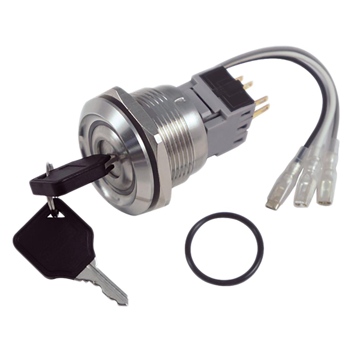 This is IP40 Key Switch SPDT 5 A 2-Way -20 → +55°C manufactured by RS Pro. The manufacturer part number is 877-1905. The product has a standard 250v AC voltage rating . Its key index is of 90° angle . The product complies with all safety standards, such as ce, cul, ul. The product has -20 → +55°c of operating temperature range. It is IP rated with ip40. The rated contact current is 5 a. Key trapping included no . The contact is equipped with spdt configuration. It has a 30v DC voltage rating . The product carries possible position value of 2. Typical depth of 52mm behind panel. The casing is constructed from highly stable stainless steel material. It has a round shape bezel . Whereas, the minimum operating temperature of the product is -20°c. The product also provide mechanical stability with 50000operace. It provides latching switch operation. It has a maximum operating temperature of +55°c. The terminal is a solder type. The product is made from sturdy silver materials.