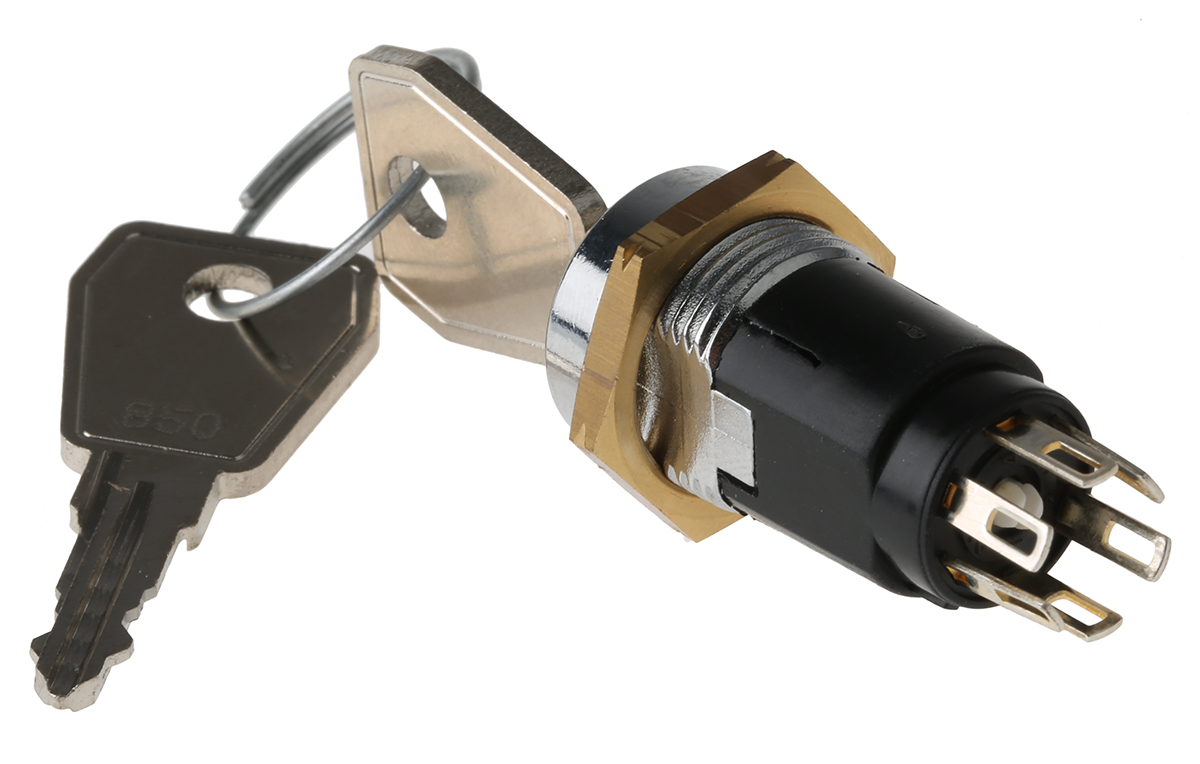 This is Key Switch DP-CO 3 A@ 50 V dc 5 A@ 115 V ac 2-Way -20 → +65°C manufactured by Lorlin. The manufacturer part number is SRL5KS2850. Its key index is of 60° angle . The product complies with all safety standards, such as rohs. The product has -20 → +65°c of operating temperature range. The rated contact current is 1 a @ 24v ac dc / 115v ac. Key trapping included yes . The key is a common key with exquisite design. Typical depth of 22.4mm behind panel. The casing is constructed from highly stable glass fibre reinforced pa material. The product carries possible position value of 2. Whereas, the minimum operating temperature of the product is -20°c. The product also provide mechanical stability with 10000operations. The contact is equipped with dp-co configuration. It has a maximum operating temperature of +65°c. The terminal is a solder type. The product is made from sturdy silver plated brass materials.