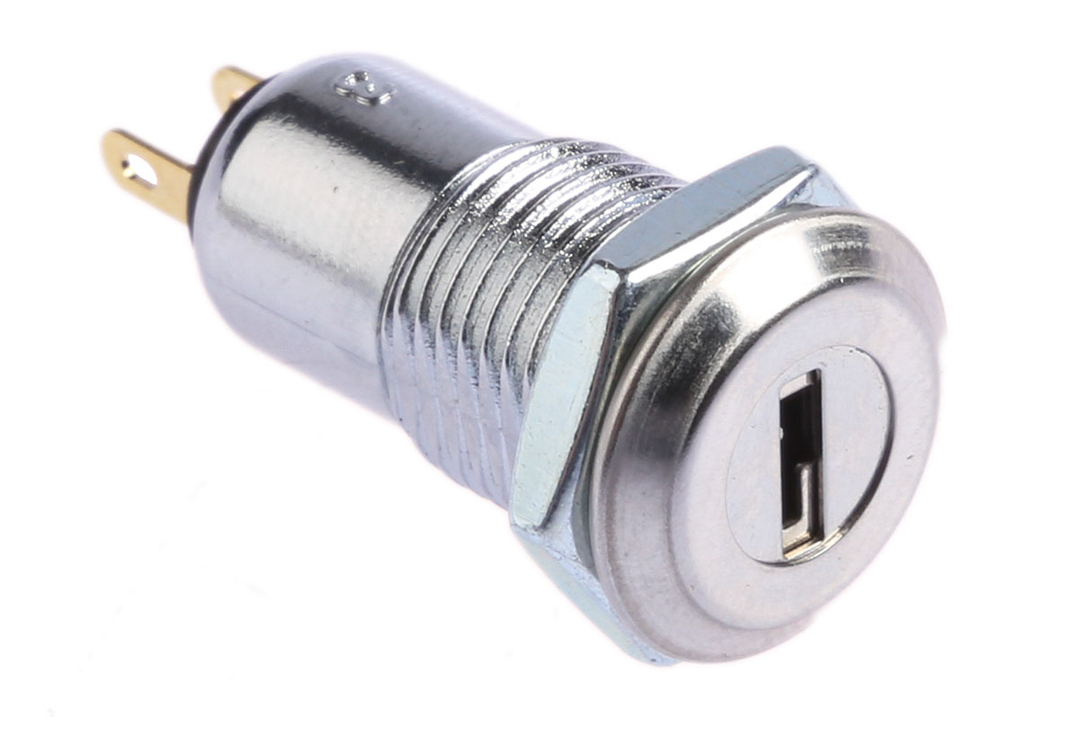 This is Key Switch SPST 500 A @ 24 V 2-Way manufactured by Lorlin. The manufacturer part number is SKL-12-BS2. The product carries possible position value of 2. Its key index is of 90° angle . The product complies with all safety standards, such as rohs. The rated contact current is 500 ma @ 24 v. The key is a common, flat key with exquisite design. The casing is constructed from highly stable zinc alloy material. It has a round shape bezel . The product also provide mechanical stability with 10000. The contact is equipped with spst configuration. The terminal is a solder type. It provides off-on switch operation.