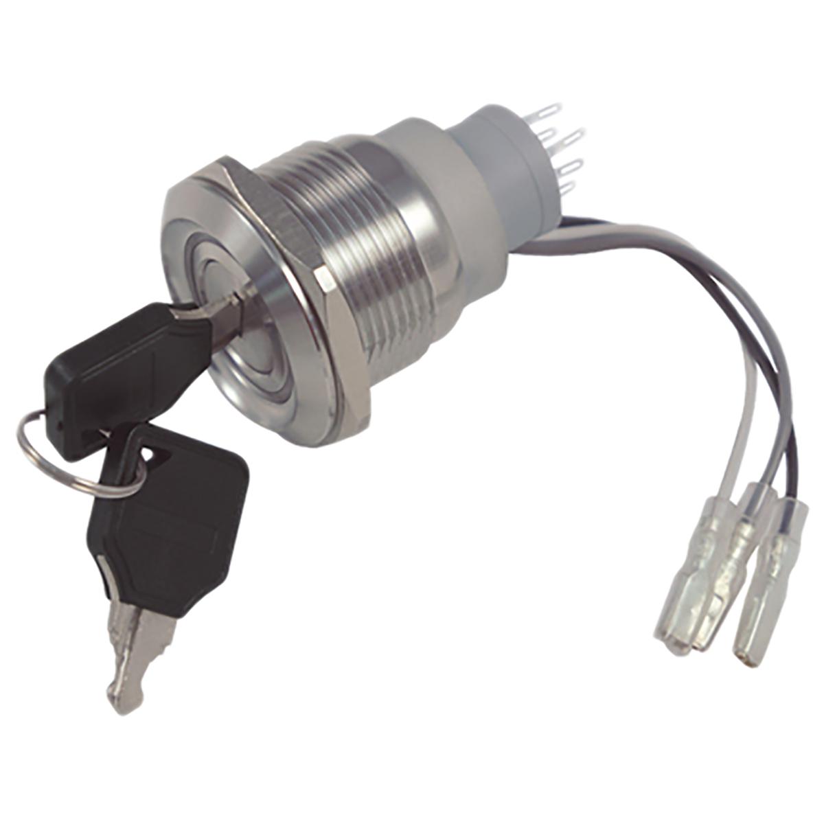 This is IP40 Key Switch SPDT 5 A 2-Way -20 → +55°C manufactured by RS Pro. The manufacturer part number is 877-1933. Priced to Clear Options - yes. The product has a standard 250v AC voltage rating . Its key index is of 90° angle . The product complies with all safety standards, such as ce, cul, ul. The product has -20 → +55°c of operating temperature range. It is IP rated with ip40. The rated contact current is 5 a. The contact is equipped with spdt configuration. It has a 30v DC voltage rating . The product carries possible position value of 2. Typical depth of 37mm behind panel. The casing is constructed from highly stable stainless steel material. It has a round shape bezel . Whereas, the minimum operating temperature of the product is -20°c. The product also provide mechanical stability with 50000operations. It provides momentary switch operation. It has a maximum operating temperature of +55°c. The terminal is a solder type. The product is made from sturdy silver materials.
