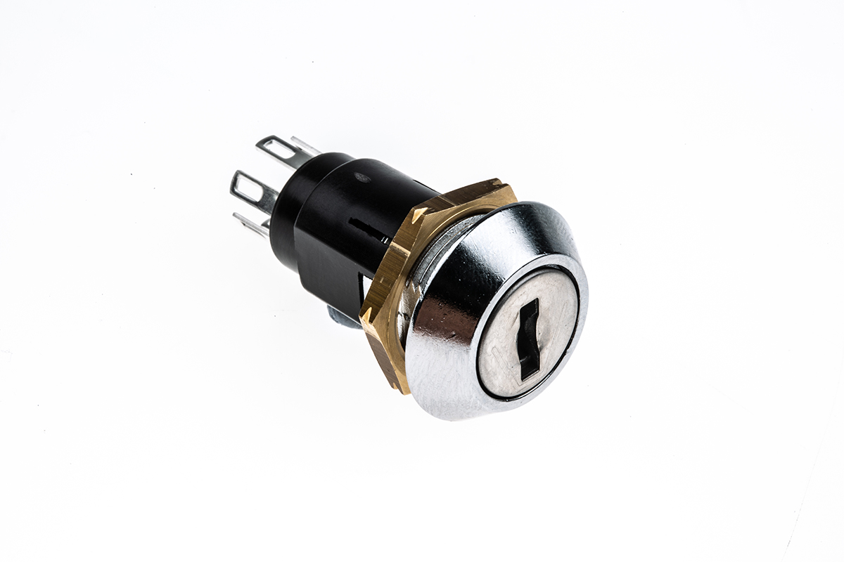 16mm Key Switch - SRL Series Miniature 2-position key switches with silver plated single-pole and double-pole changeover contacts, suitable for many low voltage switching applications Tapered or Parallel bezel styles Trapping (key removable in one position) or non-trapping (key removable in both positions) types available Common key or random key profile Rear projection less than 30 mm from panel Spare keys are available for common profiles but for security reasons not for random profiles Product Specification Contact rating 30 V DC 100 mA Mechanical service life ´10 4 times Test voltage 1000V 1 minute (key terminal) Index angle 90° Soldering temperature Operating temperature range -20°C to +55°C