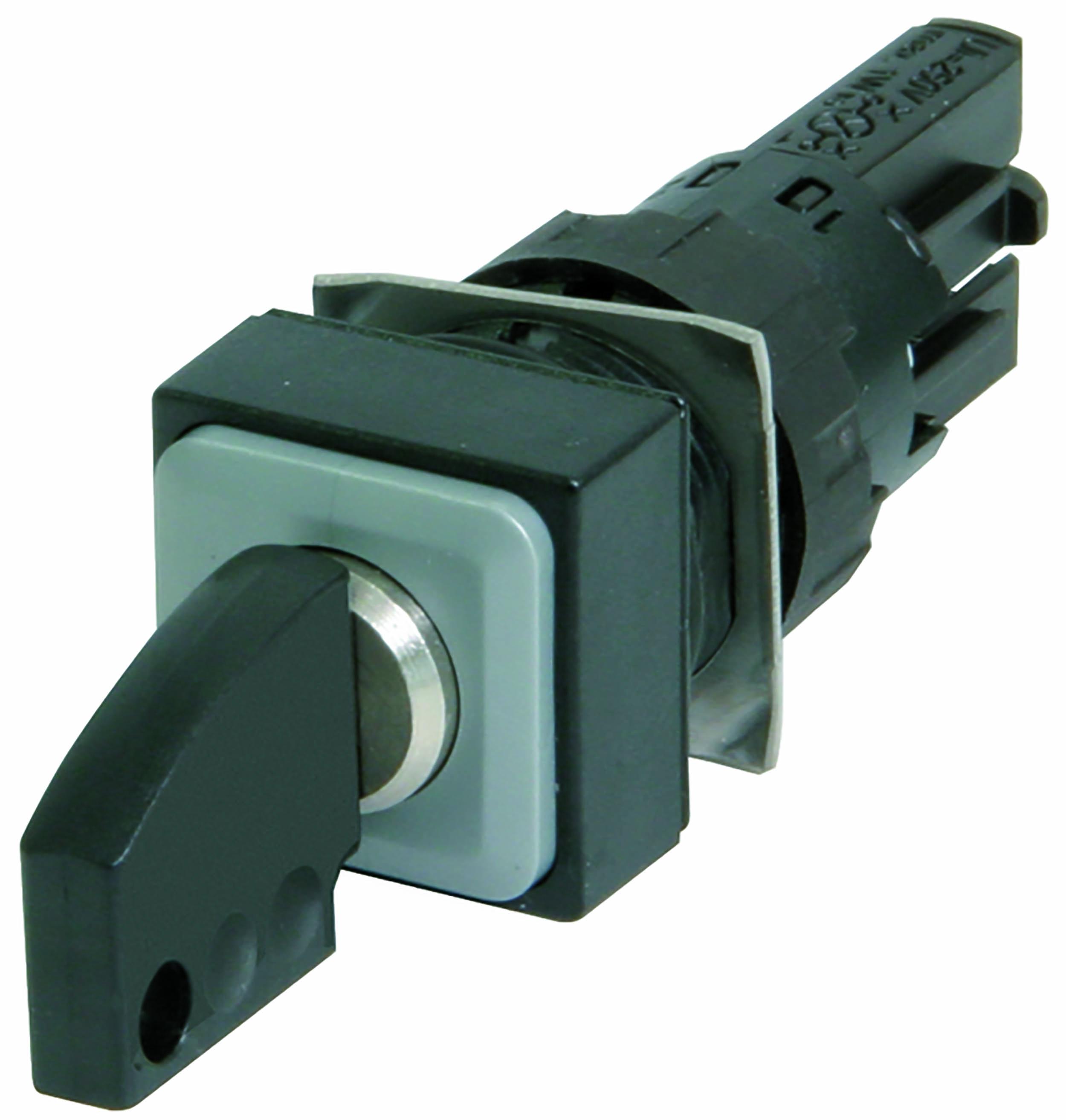 This is IP65 Key Switch 2-Way manufactured by Eaton. The manufacturer part number is 072312 Q18S1R-A1. It is IP rated with ip65. The terminal is a blade type. It has a square shape bezel . The product carries possible position value of 2. It provides latching switch operation.