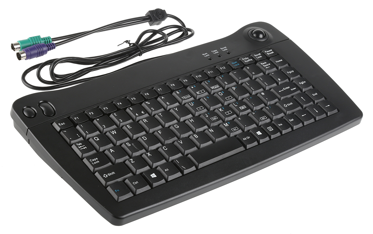 This is Wired Black PS/2 Trackball Mini Keyboard QWERTY (UK) manufactured by RS Pro. The manufacturer part number is 136-9674. It contains a/an qwerty (uk) layout keyboard . It includes a built-in USB hub no . The given dimensions of the product include 338 x 173 x 35mm. It contains a/an trackball type keyboard . Moreover, it has 89 normal keys . It has a decent black colour. It has multimedia keys no . In addition, the height is 35mm. Furthermore, the product is 338mm wide. The product comes in 173mm depth. It is wired . It allows ps/2 connection type.
