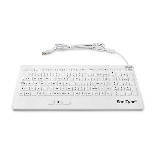 This is manufactured by SaniType. The manufacturer part number is KBSTRC105SPI-W. The total number of keys are 105. The splendid features of the product include ip66, nema 4x, sealed, water resistant. It is assigned with possible HTSUS value of 8471.60.2000. It is shipped in box package . It has a classic white colour. The product is rohs3 compliant. In addition, it is reach unaffected. Its typical moisture sensitivity level is 1 (unlimited). The product's diameters include 15.500" l x 7.000" w x 0.500" h (393.70mm x 177.80mm x 12.70mm). A bespoke product is usb interface. It comes in keyboard configuration. The product is designated with the ear99 code number.