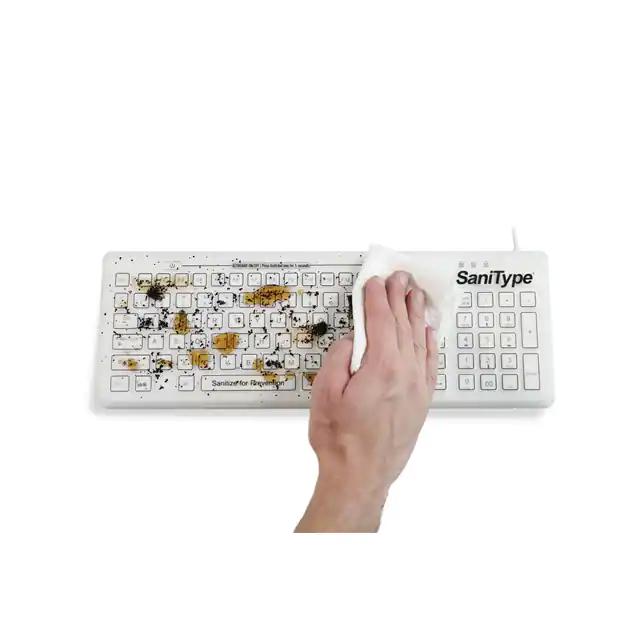 This is manufactured by SaniType. The manufacturer part number is KBSTRC106SC-W. The total number of keys are 106. The splendid features of the product include ip68, nema 4x, water resistant. It is assigned with possible HTSUS value of 8471.60.2000. It is shipped in box package . It has a classic white colour. The product is rohs3 compliant. In addition, it is reach unaffected. Its typical moisture sensitivity level is 1 (unlimited). The product's diameters include 15.270" l x 5.400" w x 0.510" h (387.86mm x 137.16mm x 12.95mm). A bespoke product is usb interface. It comes in keyboard configuration. The product is designated with the ear99 code number.
