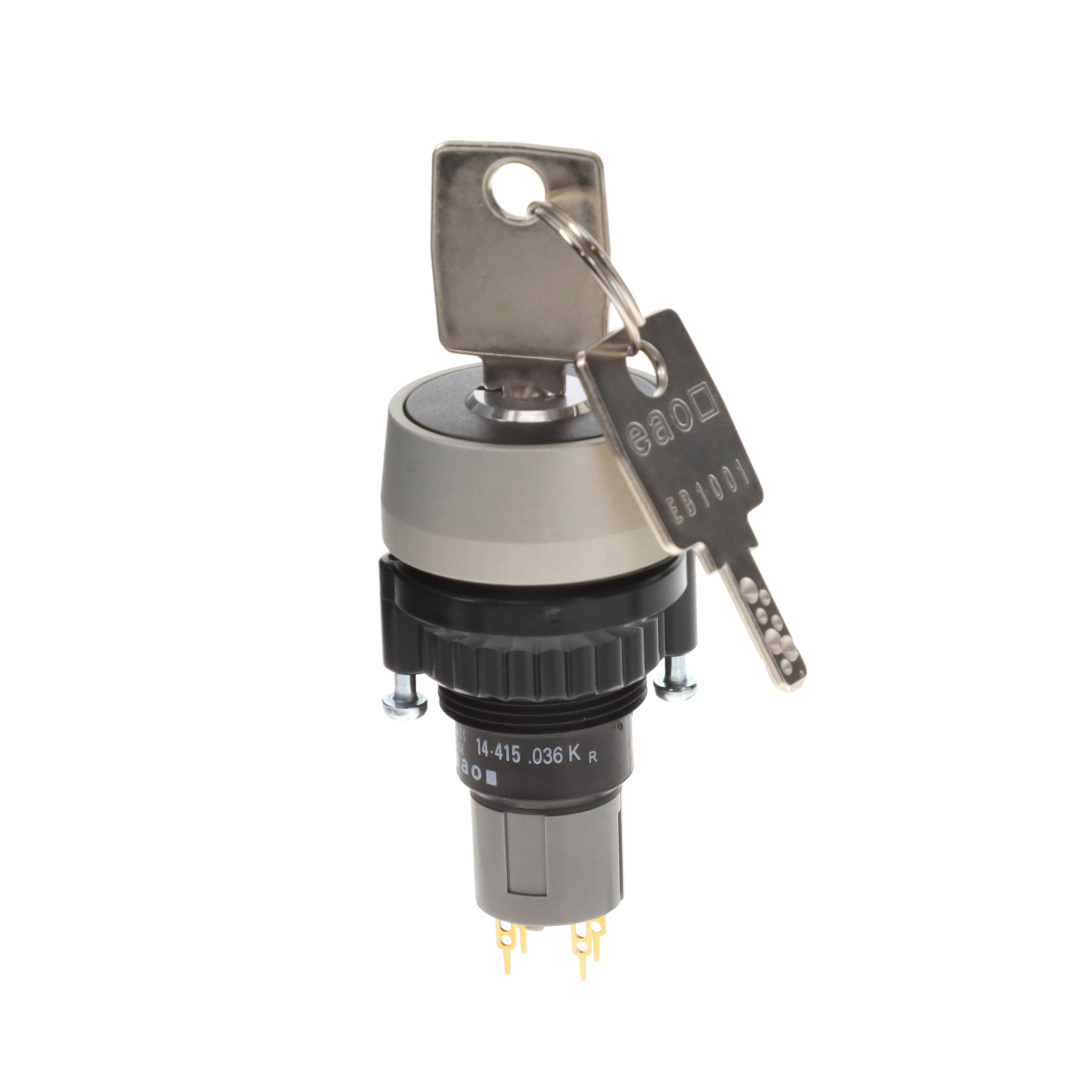 This is manufactured by EAO. The manufacturer part number is 14-415.036K. It is assigned with possible HTSUS value of 8536.50.9020. The product is rohs3 compliant. Moreover, it has pc pin, solder lug terminal style. 42 v of DC voltage rating. The product has -25°c ~ 55°c operating temperature range. It also has a circular - 30.50mm dia dimensional features. The product also provide mechanical stability with 1,000,000 cycles. The product carries possible position value of 2. The product exhibits 42 v of AC voltage rating. In addition, it is reach unaffected. It has a 41.50mm depth behind flange. The eao's product offers user-desired applications. It has a throw angle 90°. It is designed as a on-off, off-on switching function. Its typical moisture sensitivity level is not applicable. It has an integral dpst-no/nc circuit. It has a long 14 weeks standard lead time. Additionally, the product's output is 100ma (ac/dc). Contact Timing Options: not specified. The splendid features of the product include ip65. The product is available in panel mount configuration. The product 14, is a highly preferred choice for users. In addition, bulk is the available packaging type of the product. The product carries flat key actuator. It has 1 only crucial removable positions. The product is designated with the ear99 code number. Moreover, it corresponds to 14-415, a base product number of the product.