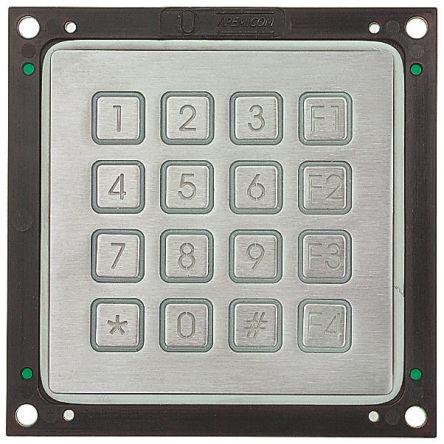 This is IP65 16 Key Illuminated Stainless Steel Keypad manufactured by Apem. The manufacturer part number is T8P0160017057. The total number of keys are 16. Illumination Option yes. It has 1000000operations mechanical life per key . It is IP rated with ip65. The product has -20 → +70°c of operating temperature range. It has about 4 x 4 layout keypad . Typical depth of 10mm behind panel. Whereas, the minimum operating temperature of the product is -20°c. It has a maximum operating temperature of +70°c. The actuator is designed from sturdy stainless steel material.