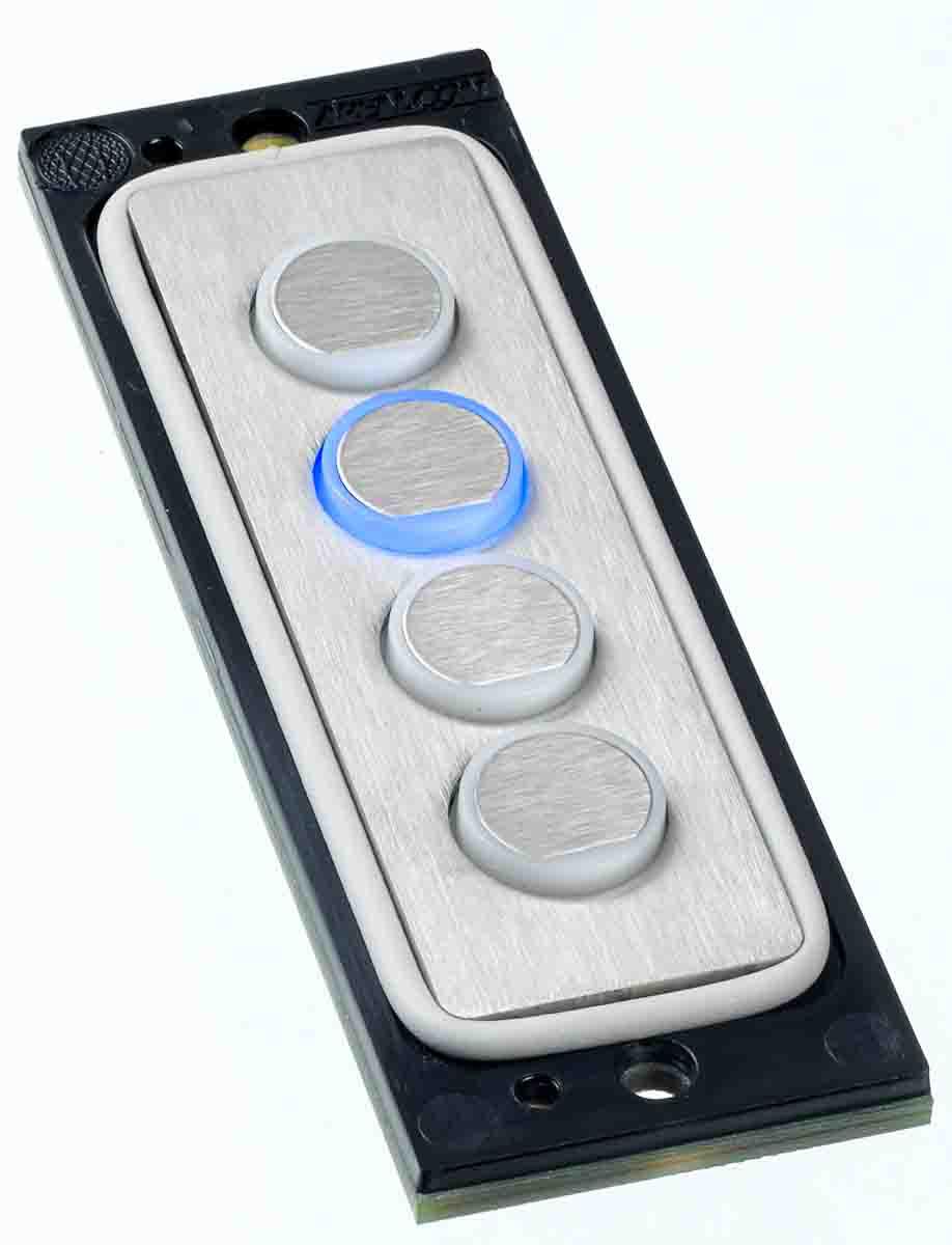 This is IP65 4 Key ABS Illuminated Stainless Steel Keypad manufactured by APEM. The manufacturer part number is PR0041L0B120. The total number of keys are 4. Illumination Option yes. It is IP rated with ip65. Moreover, the product has a nominal 12v dc voltage rating. The casing is constructed from highly stable abs material. Moreover, it has a membrane operation characteristic included no . It has about 1 x 4 layout keypad . Typical depth of 10mm behind panel. In addition, it has a matrix keypad output . Whereas, the minimum operating temperature of the product is -20°c. The product has -20 → +70°c of operating temperature range. It has a maximum operating temperature of +70°c. The actuator is designed from sturdy stainless steel material. The product is made from sturdy gold plated materials.