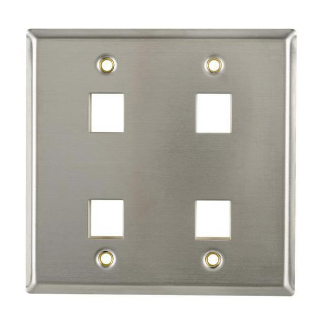 This is manufactured by HellermannTyton. The manufacturer part number is FPDGQUAD-SS. Additionally, the product is designed with double gang Style. It is assigned with possible HTSUS value of 3926.90.9985. The product is rohs compliant. Furthermore, the product is 4.598" (116.80mm) wide. It comes in faceplate configuration. The product is made from highly stable and reliable stainless steel. It is shipped in bulk package . Its typical moisture sensitivity level is 1 (unlimited). This product features 4 number of ports. The product comes in 0.441" (11.20mm) depth. It has a long 11 weeks standard lead time. It has a classic silver colour. The ports are directed at straight direction. Its accurate length is 4.535" (115.20mm). The product is suitable for use with modular jacks. Moreover, it corresponds to fpdgquad, a base product number of the product. The product is designated with the ear99 code number.