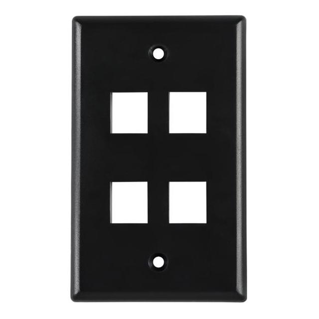 This is manufactured by HellermannTyton. The manufacturer part number is FPQUAD-BK. Additionally, the product is designed with single gang Style. It is assigned with possible HTSUS value of 3926.90.9985. Furthermore, the product is 2.756" (70.00mm) wide. It comes in faceplate configuration. The product is made from highly stable and reliable acrylonitrile butadiene styrene (abs). It carries ul94 v-0 of material flammability rating. The hellermanntyton's product offers user-desired applications. Its typical moisture sensitivity level is 1 (unlimited). This product features 4 number of ports. Its accurate length is 4.500" (114.30mm). It has a classic black colour. The ports are directed at straight direction. The product comes in 0.217" (5.50mm) depth. In addition, bulk is the available packaging type of the product. The product is suitable for use with modular jacks. Moreover, it corresponds to fpquad, a base product number of the product. The product is designated with the ear99 code number.