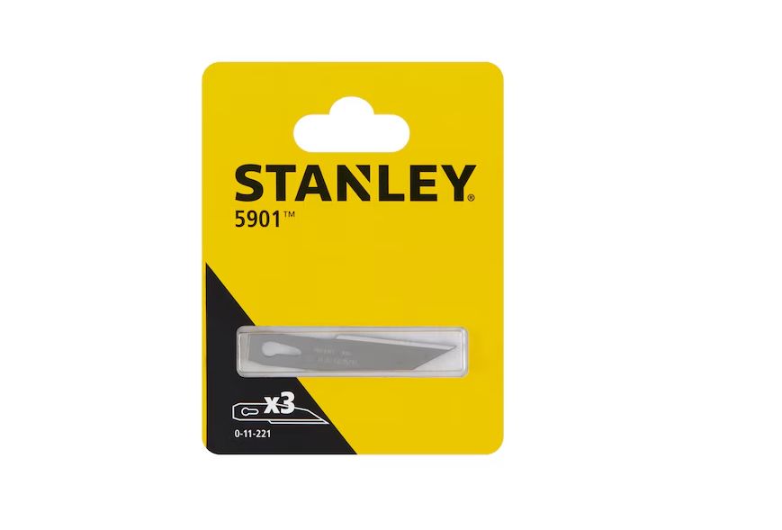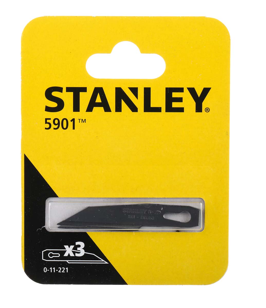 This is Diecast Metal Scalpel Blade manufactured by Stanley. The manufacturer part number is 0-11-221. It has a scalpel blade type blade . Its blade is 0.4 mm in width . It withstand heavy duty no . The product is made from highly stable and reliable carbon steel. The blade has a 60 mm size. The product consists of 3 pieces.