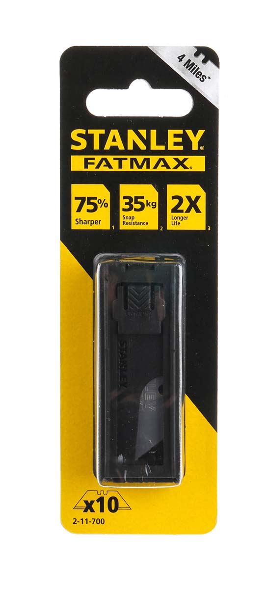 This is General Purpose Fixed Blade Knife Knife Blade 1 Blade Segments manufactured by Stanley FatMax. The manufacturer part number is 2-11-700. It has a safety knife blade type blade . Moreover, its blade is of flat shape . The product consists of 10 pieces.