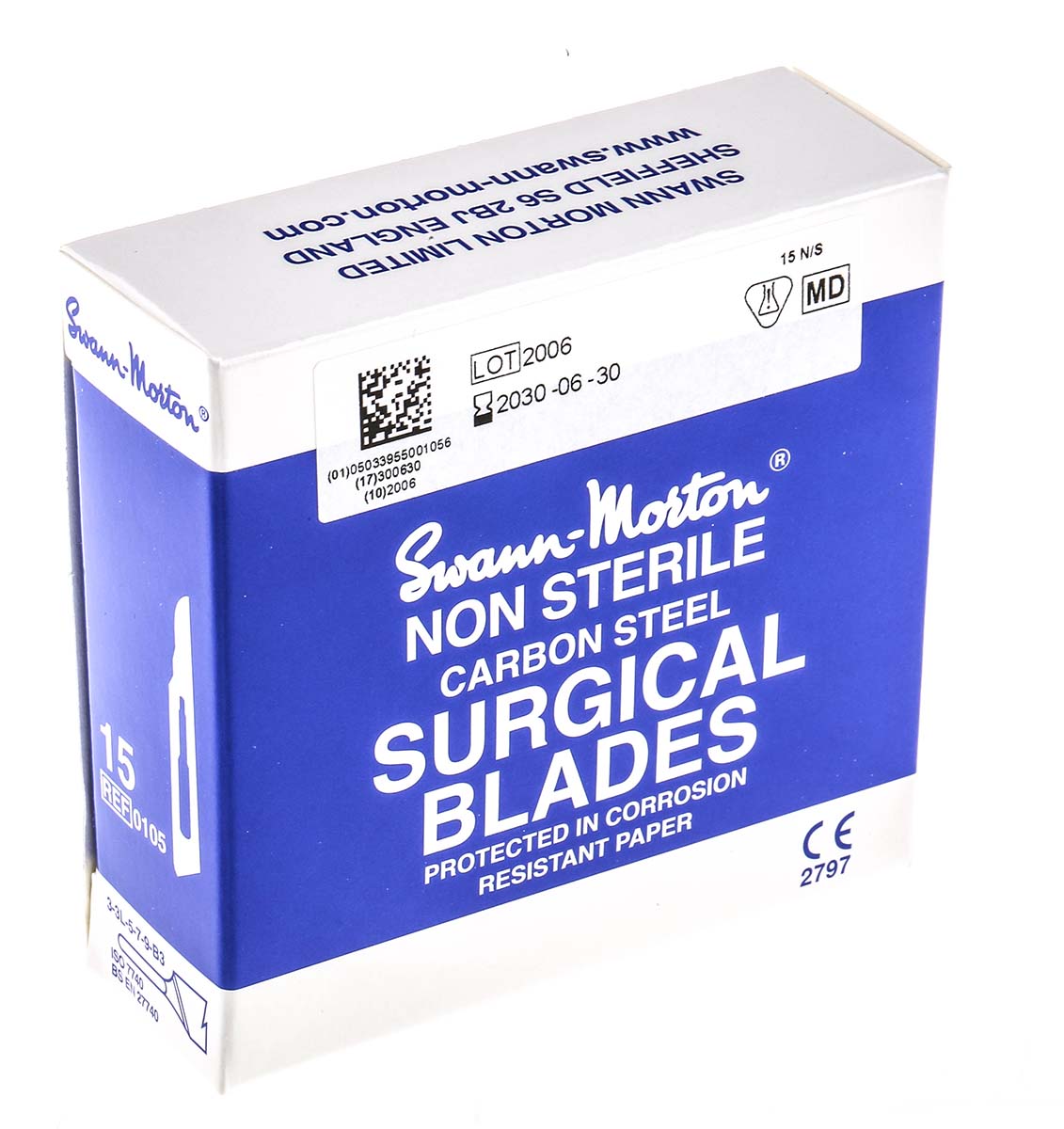 This is No.15 Carbon Steel Scalpel Blade manufactured by Swann-Morton. The manufacturer part number is 0105. It has a scalpel blade type blade . The product is made from highly stable and reliable carbon steel. The product consists of 100 pieces. The blade has a no.15 size.