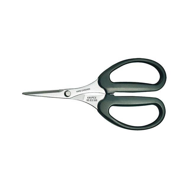 This is manufactured by Knipex Tools LP. The manufacturer part number is 95 03 160 SB. This is basically a useful and handy shears (scissors). The splendid features of the product include chrome finish, non-slip, serrated. In addition, it is vendor undefined. It is assigned with possible HTSUS value of 8213.00.9000. In addition, bulk is the available packaging type of the product. Its typical moisture sensitivity level is 1 (unlimited). It has a long 2 weeks standard lead time. The knipex tools lp's product offers user-desired applications. Moreover, it corresponds to 95 03 160, a base product number of the product. The product is designated with the ear99 code number.