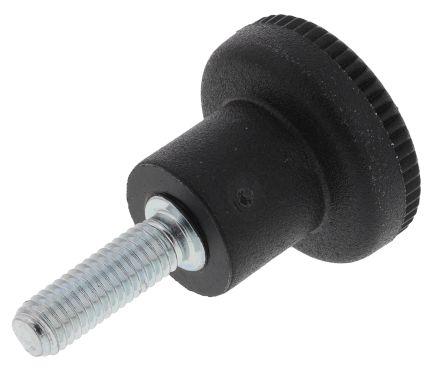 This is Black Polymer Knob M5 x 16 manufactured by Elesa. The manufacturer part number is RS_448-8886. Its overall knob diameter is about 21mm . The product is available in threaded stud configuration. It has a standard m5 x 16 thread . The product has an attractive round shape knob . It has a decent black colour. The product's body is nicely designed from polymer materials. It has a standard m5 thread diameter . Features a thread length of 16mm. While it is also supplied with highly stable steel insert material.