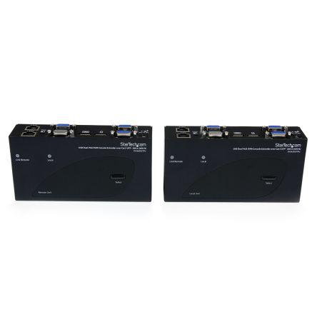 This is Dual Monitor VGA over CATx KVM Extender manufactured by Startech. The manufacturer part number is SV565DUTPU. Its transmitter's height is about 40mm . With 155 x 80 x 40mm transmitter dimensions . With 155 x 80 x 40mm receiver dimensions . It has an attractive vga type video connection . It supports 2 displays . It comes with a/an catx transmission method . It exhibits a maximum 1920 x 1200 resolution . Moreover, it has 80mm of receiver's length . This product features 2 number of ports. It has a standard 200mextension distance . 80mm is the transmitter's depth of the product . It has 40mm of receiver height . It has a standard 155mm transmitter width . It has a usb type keyboard/mouse connection . It comes in extender pair configuration. In addition, it has a standard 155mm receiver width .