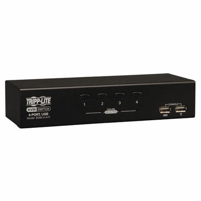 This is manufactured by Tripp Lite. The manufacturer part number is B006-VU4-R. The tripp lite's product offers user-desired applications. It is assigned with possible HTSUS value of 8537.10.9170. The product is rohs3 compliant. This product features 4 number of ports. Its typical moisture sensitivity level is not applicable. In addition, bulk is the available packaging type of the product. It has supplied with other peripherals, such as vga monitor, usb keyboard, usb mouse. The product is available in desktop configuration. The product is designated with the ear99 code number. It comes in network kvm configuration. The product is available in 7.90" l x 2.90" w x 1.70" h (200.7mm x 73.7mm x 43.2mm) size.