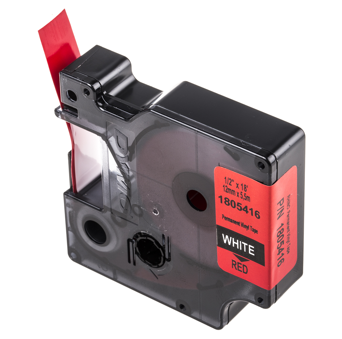 This is DYMO 12 mm White on Red Label Printer Tape manufactured by Dymo. The manufacturer part number is 1805416. It is designed with an attractive red colour background . Is it a better world product? yes. Additionally, it works with rhino 4200, rhino 5200, rhino 6000 printer models . Its tape is about 12 mm in width . Its label quantity is 1 roll . It offers an adorable white colour print . The product is laminated no . Its tape is 5.5 m in length .