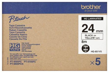 This is Black on Yellow Label Printer Tape & Label manufactured by BROTHER. The manufacturer part number is HGe651V5. It is designed with an attractive yellow colour background . Its tape is about 24 mm in width . Its label quantity is 5per pack . It offers an adorable black colour print . The product is laminated yes . Its tape is 8 m in length .