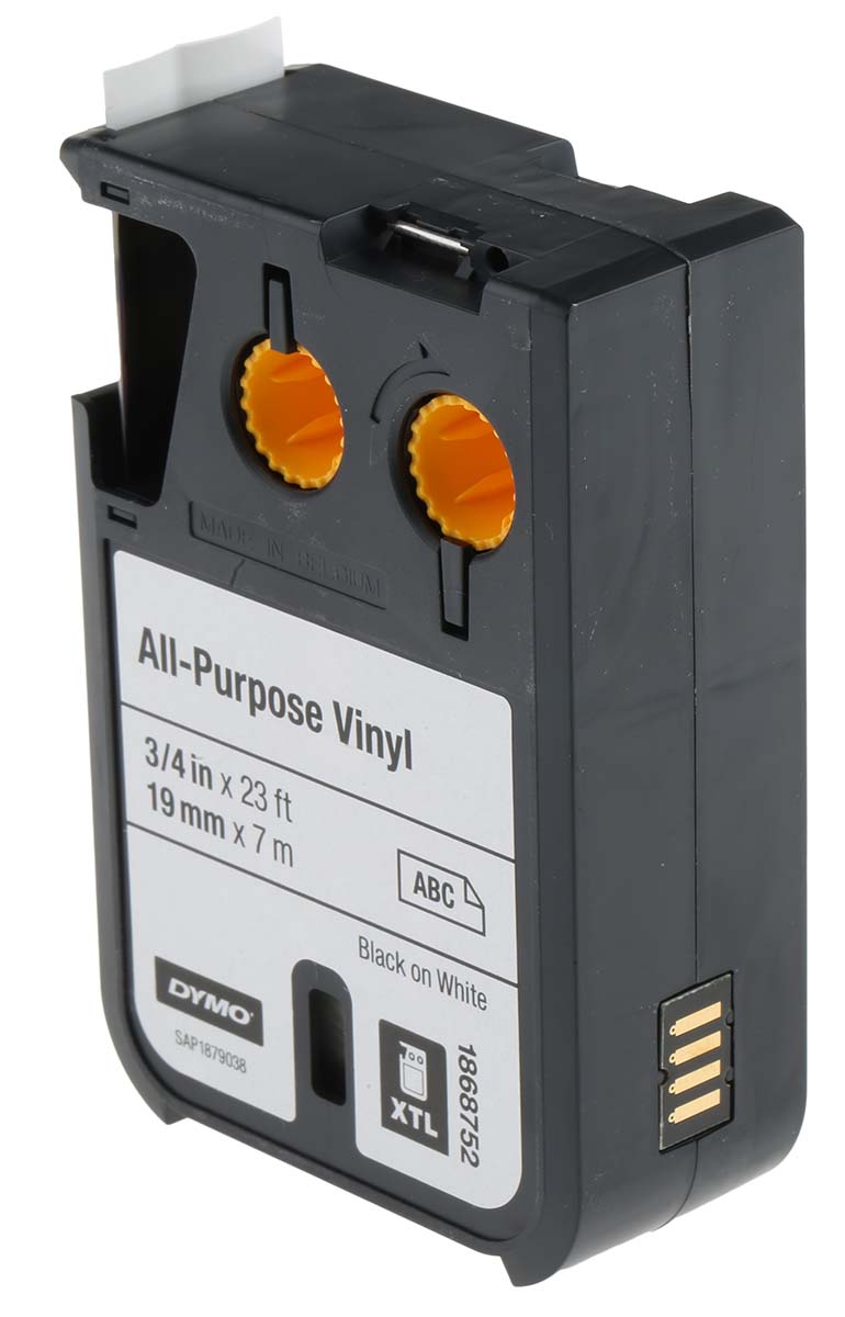This is DYMO XTL 19 mm Black on White Industrial Vinyl Tape manufactured by Dymo XTL. The manufacturer part number is 1868752. It is designed with an attractive white colour background . Additionally, it works with xtl 300, xtl 500 printer models . Its tape is about 19 mm in width . Its label quantity is 1 roll . It offers an adorable black colour print . The product is laminated no . Its tape is 7 m in length .