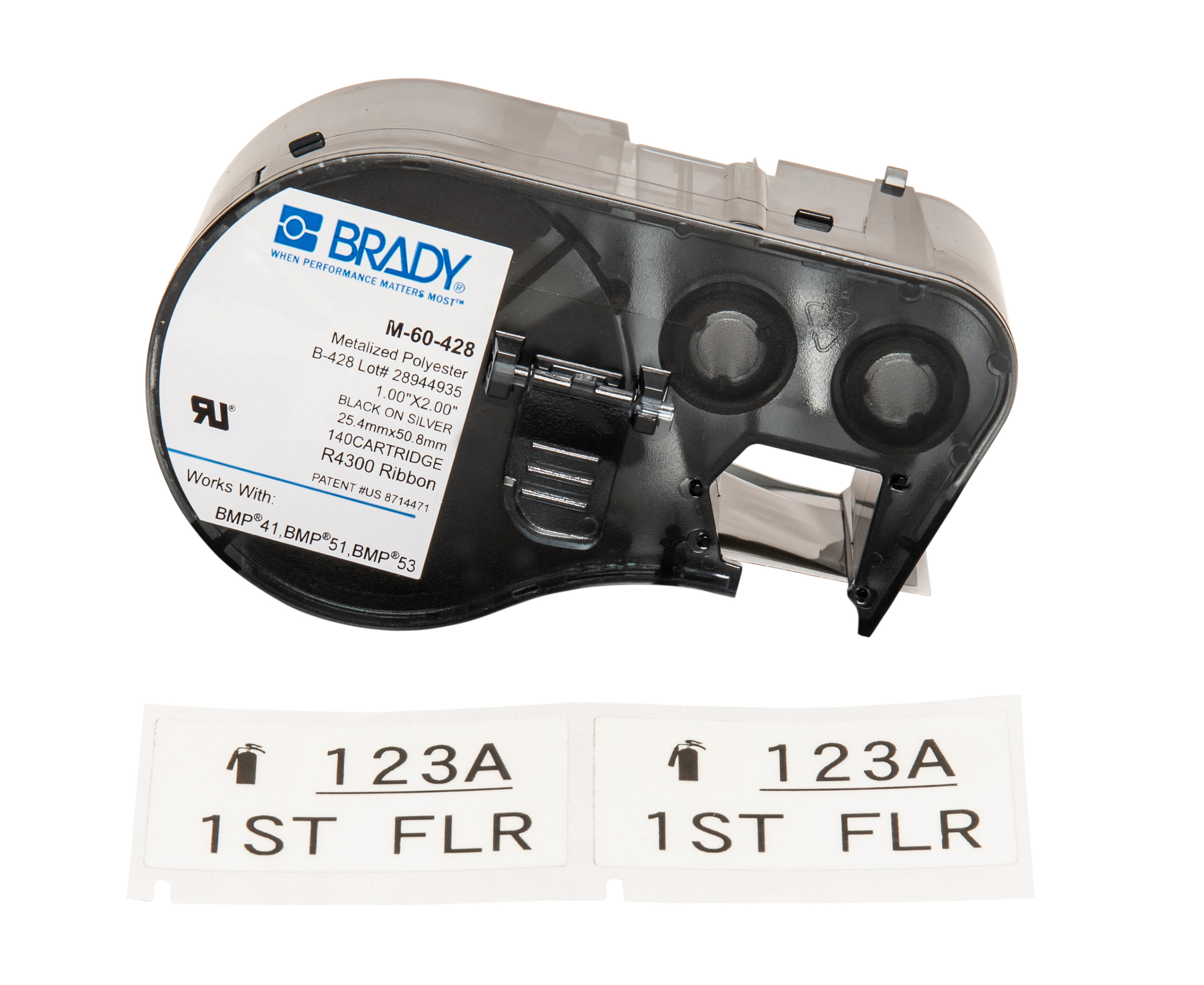 This is Cable Label For Use With BMP41 Label Printer BMP51 Label Printer BMP53 Label Printer manufactured by Brady. The manufacturer part number is M-60-428. It is designed with an attractive silver colour background . In addition, it has a standard label about 50.8mm in length . The product b-428 metallised polyester, is a highly preferred choice for users. Its tape is about 25.4 mm in width . It offers an adorable black colour print . Additionally, it works with bmp41, bmp51, bmp53 printer models .