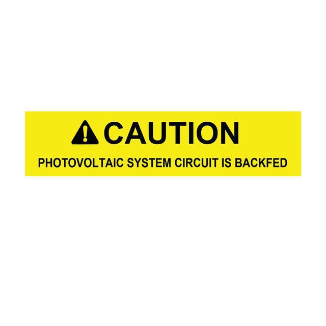 This is manufactured by HellermannTyton. The manufacturer part number is 596-00587. Its text message shows caution-photovoltaic system circuit is backfed . The product is available in self adhesive configuration. It has a decent black, yellow colour. The product is made from highly stable and reliable vinyl. In addition, the height is 19.05 mm. Furthermore, the product is 104.6mm wide. It contains 50 item per package . However, its text language is english . Label with a size of 4.12" l x 0.75" w (104.6mm x 19.0mm). It is assigned with possible HTSUS value of 4821.90.2000. The product is rohs compliant. Its typical moisture sensitivity level is 1 (unlimited). In addition, 50 per roll is the available packaging type of the product. The product is suitable for use with warning. The product is highly reliable with a long-lasting period of 24 months. It has a long 4 weeks standard lead time. The hellermanntyton's product offers user-desired applications. Moreover, it corresponds to 596-00, a base product number of the product. The product is designated with the ear99 code number.