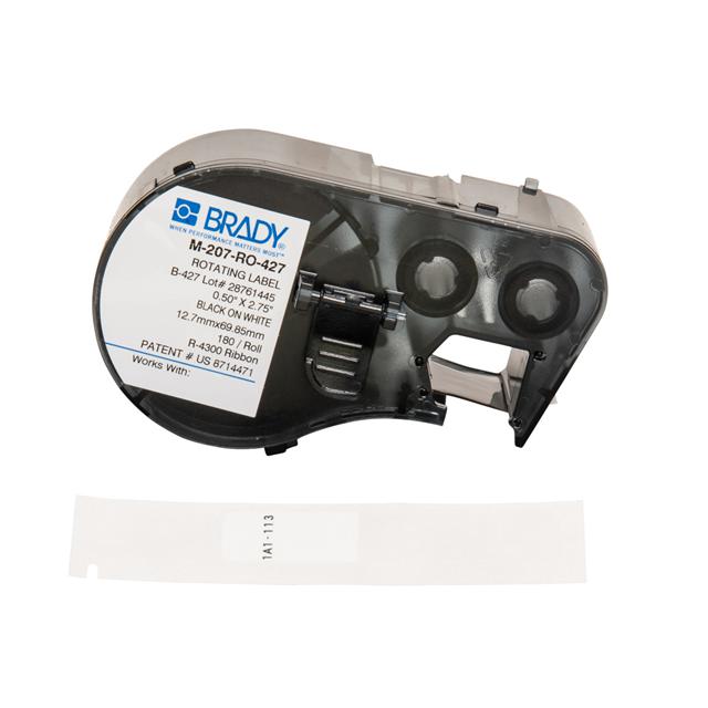 This is manufactured by Brady Corporation. The manufacturer part number is M-207-RO-427. It is assigned with possible HTSUS value of 8443.99.2550. The product is rohs3 compliant. The product's body is manufactured from highly durable vinyl materials. Location Information - outdoor. The background colour is clear, white. In addition, it is reach unaffected. The product is widely employed in cable and wire management. The printer is known as bmp®41 label printer, bmp®51 label printer. The brady corporation's product offers user-desired applications. Its typical moisture sensitivity level is not applicable. Its accurate length is 3.850" (97.79mm). A bespoke label is a die cut label. Furthermore, the product is 0.500" (12.70mm) wide. In addition, bag is the available packaging type of the product. The product is designated with the ear99 code number.