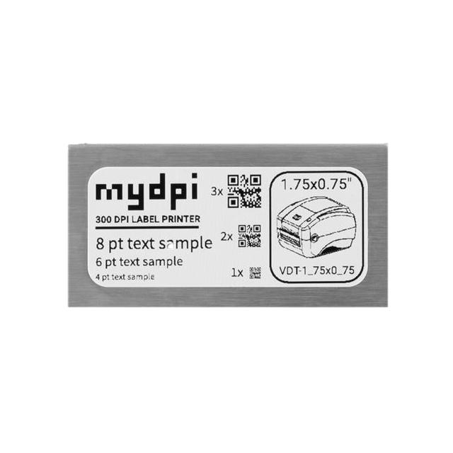 This is manufactured by mydpi. The manufacturer part number is VDT-1_75X0_75. It is assigned with possible HTSUS value of 8443.99.2550. The product is rohs3 compliant. The product's body is manufactured from highly durable polypropylene (pp) materials. The background colour is white. The product is widely employed in barcoding. The printer is known as v-series. The mydpi's product offers user-desired applications. Its typical moisture sensitivity level is 1 (unlimited). Its accurate length is 1.750" (44.45mm). A bespoke label is a die cut label. It has a long 1 weeks standard lead time. Furthermore, the product is 0.750" (19.05mm) wide. The product v, is a highly preferred choice for users. In addition, bulk is the available packaging type of the product. The product is suitable for use with thermal transfer printer. The product is designated with the ear99 code number.