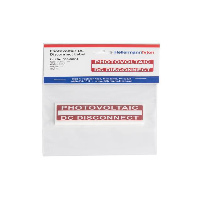 This is manufactured by HellermannTyton. The manufacturer part number is 596-00854. It is rated with csa, ifc, nec, ul. Applications Information- safety: warning. It is assigned with possible HTSUS value of 3926.90.9985. The product is rohs compliant. Arrangement configuration includes - text only. The product's body is manufactured from highly durable polyester laminated vinyl materials. Location Information - outdoor. The background colour is red, white. The product is widely employed in electrical. The hellermanntyton's product offers user-desired applications. It is pre-printed, printable (thermal transfer). Language include - english. Its typical moisture sensitivity level is 1 (unlimited). Its accurate length is 3.750" (95.25mm). While text on legend is - photovoltaic dc disconnect. It has a long 5 weeks standard lead time. The splendid features of the product include abrasion resistant, chemical resistant, uv resistant, weather resistant. The product is available in adhesive configuration. Furthermore, the product is 1.000" (25.40mm) wide. The legend is white. It is a rectangle product with unique specifications. Moreover, it corresponds to 596-00, a base product number of the product. The product is designated with the ear99 code number.